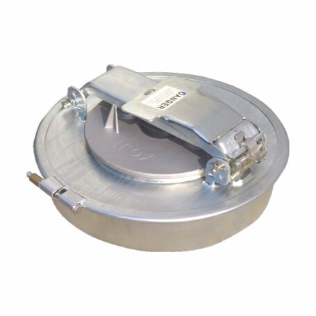 يتم تثبيت غطاء الفتحة على الجزء العلوي من ناقلة النفط المصممة لتوفير الوصول إلى الخزان للتفتيش والصيانة والتنظيف.